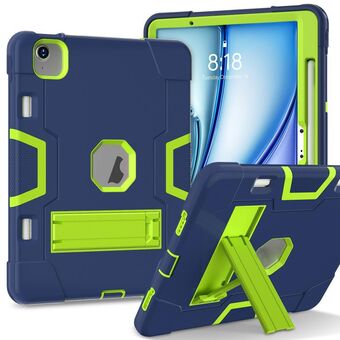 For iPad Air 11 2025 / 2024 Contrast Color Silicone Acrylic PC Tablet Case with Holder(Navy Blue Yellow Green)