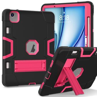 For iPad Air 11 2025 / 2024 Contrast Color Silicone Acrylic PC Tablet Case with Holder(Rose Red Blue)