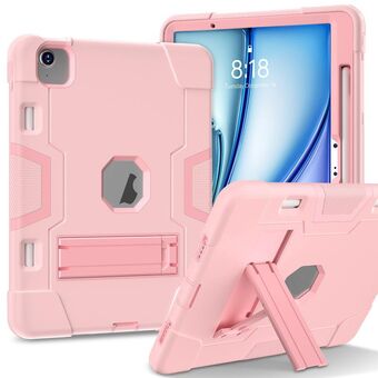 For iPad Air 11 2025 / 2024 Contrast Color Silicone Acrylic PC Tablet Case with Holder(Rose Gold)