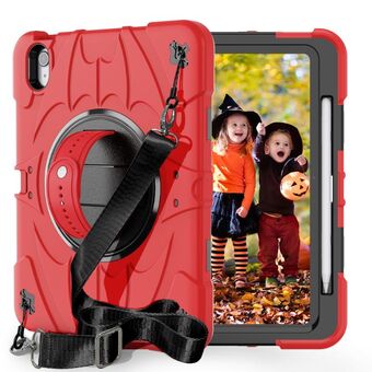 For iPad Air 11 2024 / 10.9 2022 Bat Hand Grip Turntable Stand Tablet Case(Red Black)