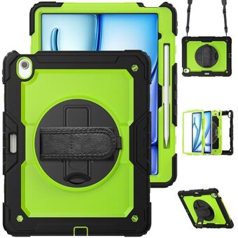 For iPad Air 13 2024 / Air 13 2025 Silicone Hybrid PC Tablet Case with Holder & Shoulder Strap(Navy Blue Lime)