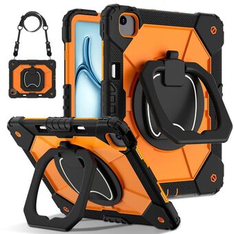 For iPad Air 13 2025 / 2024 Silicone Hybrid PC Tablet Case with Shoulder Strap(Beige + Cyan-blue)