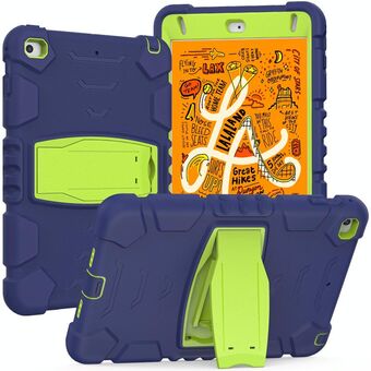 3-Layer Protection Screen Frame + PC + Silicone Shockproof Combination Case with Holder For iPad mini 5 / 4(Navy Blue + Lime)