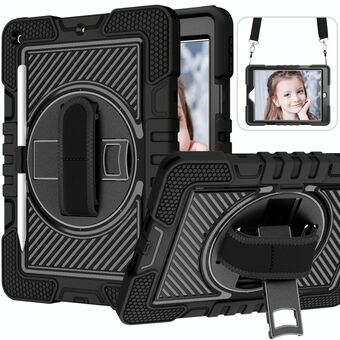 For iPad Mini 5 360 Degree Rotation Silicone Protective Cover with Holder & Hand Strap & Long Strap & Pencil Slot(Black)