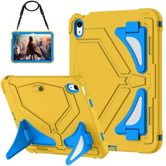 For iPad 2025 / 2022 Black Leopard Silicone Hydric PC Tablet Case with Shoulder Strap(Yellow Blue)