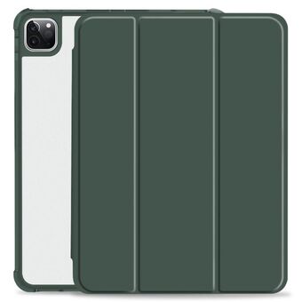 For iPad Pro 12.9 2022 / 2021 / 2020 3-fold Shockproof Smart Leather Tablet Case(Deep Green)