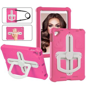 For iPad Air 2 / 9.7 2017 / 2018 Shield 360 Rotation Handle EVA Shockproof PC Tablet Case(Rose Red Beige)