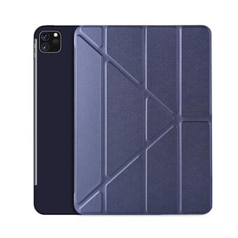 For iPad Pro 11 2022 / 2021 / 2020 / 2018 Deformation Transparent Acrylic Horizontal Flip PU Leather Tablet Case with Multi-folding Holder & Sleep / Wake-up Function & Pen Slot(Dark Blue)