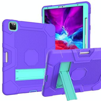 For iPad Pro 12.9 inch (2020) Contrast Color Robot Shockproof Silicone + PC Protective Tablet Case with Holder(Purple Mint Green)