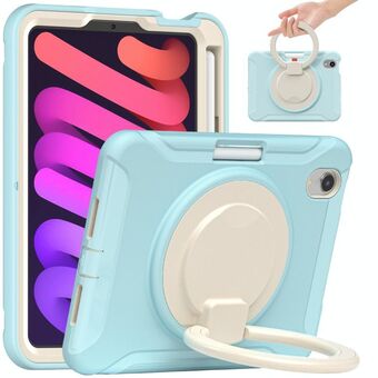 For iPad mini 6 / mini 2024 Heavy Duty TPU Hybrid PC Tablet Case with 360 Rotation Handle Grip Holder & Pen Slot(Ice Crystal Blue)