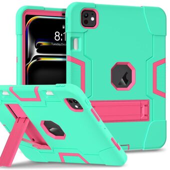 For iPad Pro 11 2024 Contrast Color Silicone Acrylic PC Tablet Case with Holder(Mint Green Rose Red)