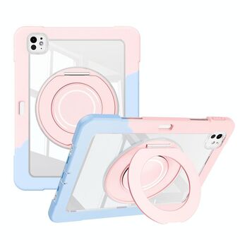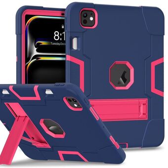 For iPad Pro 11 2024 Contrast Color Silicone Acrylic PC Tablet Case with Holder(Rose Red Blue)