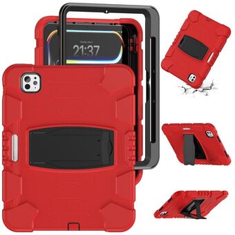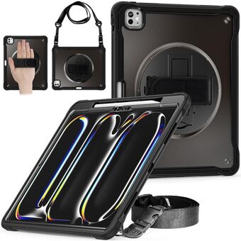 For iPad Pro 11 2024 Heavy Duty Hybrid Tablet Case with Hand Grip & Strap(Black)