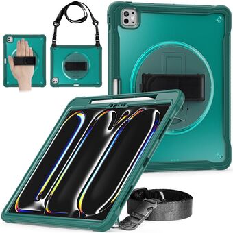 For iPad Pro 11 2024 Heavy Duty Hybrid Tablet Case with Hand Grip & Strap(Dark Green)
