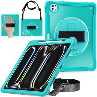 For iPad Pro 11 2024 Heavy Duty Hybrid Tablet Case with Hand Grip & Strap(Light Blue)