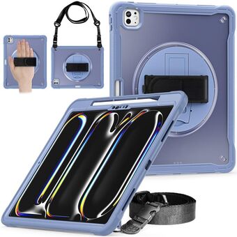 For iPad Pro 11 2024 Heavy Duty Hybrid Tablet Case with Hand Grip & Strap(Lavender Grey)