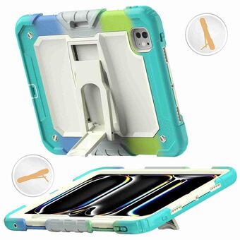 For iPad Pro 11 2024 Silicone Hydric PC Tablet Case with Shoulder Strap & Holder(Beige Cyan-blue)
