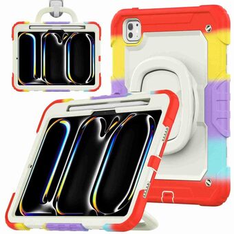For iPad Pro 11 2024 Handle Silicone Hydric PC Tablet Case with Shoulder Strap(Camouflage Red)
