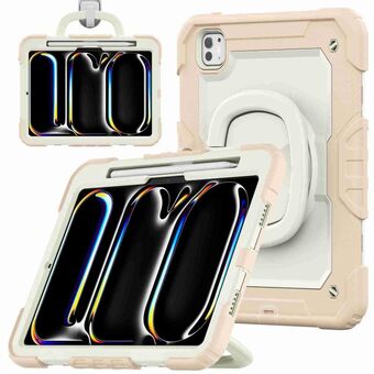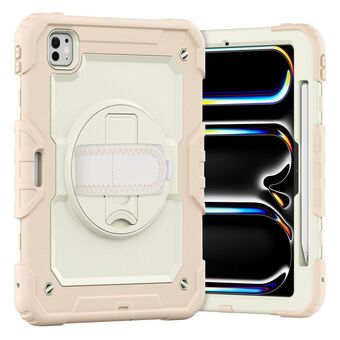 For iPad Pro 11 2024 Handle Silicone Hydric PC Tablet Case with Shoulder Strap(Beige Rose Gold)