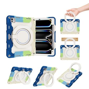 For iPad Pro 11 2024 Handle Silicone Hydric PC Tablet Case with Shoulder Strap(Camouflage Light Blue)