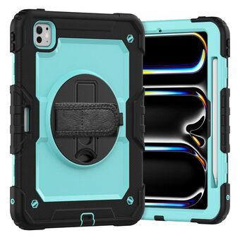 For iPad Pro 11 2024 Handle Silicone Hydric PC Tablet Case with Shoulder Strap(Light Blue)