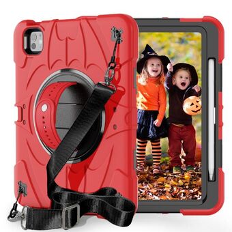 For iPad Pro 11 2024 Heavy Duty Hybrid Tablet Case with Handle & Strap(Rose Red)