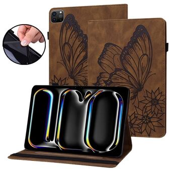 For iPad Pro 11 2024 Big Butterfly Embossed Leather Tablet Case(Brown)