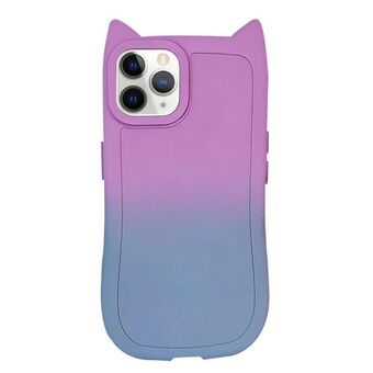 For iPhone 11 Pro Gradient Cat Ear Design TPU Phone Case(Purple Gray)