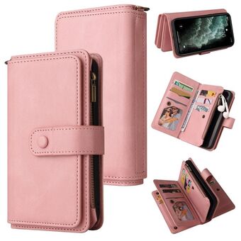 Skin Feel PU + TPU Horizontal Flip Leather Case with Holder & 15 Cards Slot & Wallet & Zipper Pocket & Lanyard For iPhone 11 Pro(Pink)