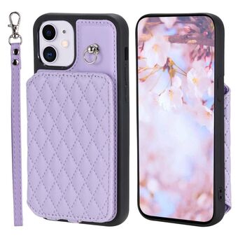 For iPhone 11 Grid Texture Card Bag Phone Case with Lanyard(Purple)