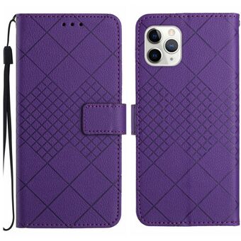 For iPhone 11 Pro Rhombic Texture Flip Leather Phone Case with Lanyard(White)