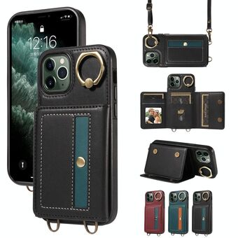 For iPhone 11 Pro Crossbodys Card Bag Ring Holder Leather Phone Case(Black)