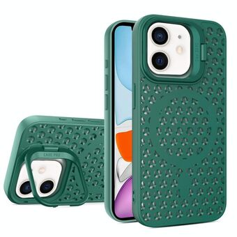 For iPhone 11 Hollow Cooling Lens Holder MagSafe Magnetic TPU Phone Case(Green)