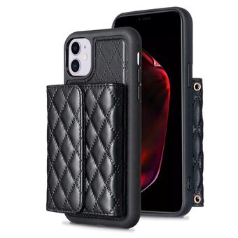 For iPhone 11 BF25 Square Plaid Card Bag Holder Phone Case(Black)