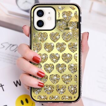 For iPhone 11 Love Hearts Diamond Mirror TPU Phone Case(Gold)