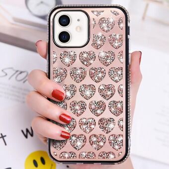 For iPhone 11 Love Hearts Diamond Mirror TPU Phone Case(Rose Gold)