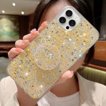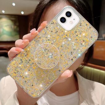 For iPhone 11 Starry Sequin Round Stand Epoxy TPU Phone Case(Yellow)