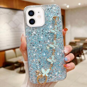 For iPhone 11 Starry Sequin Butterfly Chain Epoxy TPU Phone Case(Blue)