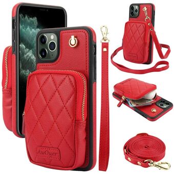For iPhone 11 Pro AwQuer Crossbody Zipper Wallet Rhombic Leather Back Phone Case(Dark Purple) (Awquer)