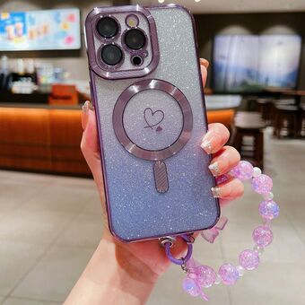 For iPhone 11 Pro Max Loves Gradient Glitter Bracelets Carbon Fiber Magsafe TPU Phone Case(Purple)