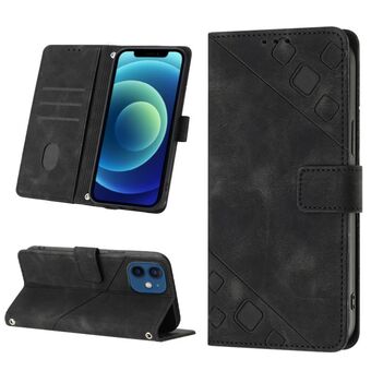 For iPhone 12 / 12 Pro Skin-feel Embossed Leather Phone Case(Black)