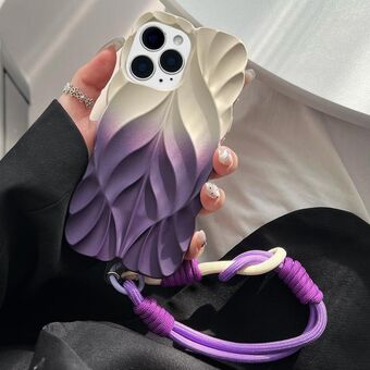 For iPhone 12 Thickened 3D Leaf Pattern Two-Color Oil-Sprayed TPU Phone Case with Strap(Purple Grey)
