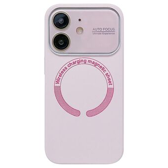 For iPhone 12 Large Window Acrylic Glass Lens MagSafe Silicone Phone Case(Rose Pink)