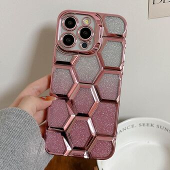 For iPhone 12 Plated Gradient Glitter Round Holder TPU Phone Case(Pink)