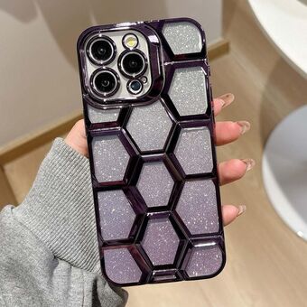 For iPhone 12 Pro Plated Gradient Glitter Round Holder TPU Phone Case(Purple)