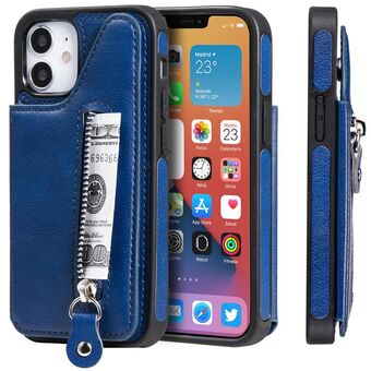 For iPhone 12 mini Solid Color Double Buckle Zipper Shockproof Protective Case (Blue)