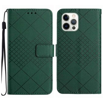 For iPhone 12 Pro Max Rhombic Grid Texture Leather Phone Case(Green)