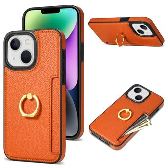 For iPhone 13 Ring Card Litchi Leather Back Phone Case(Orange)