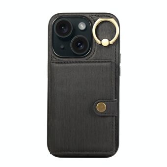 For iPhone 13 Brushed Texture Wallet Ring Holder Phone Case(Black)