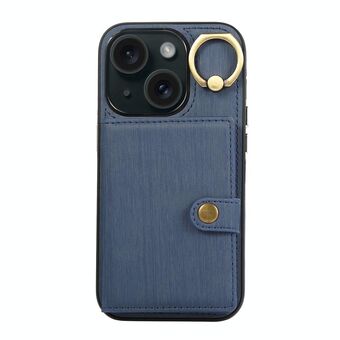 For iPhone 13 Brushed Texture Wallet Ring Holder Phone Case(Blue)